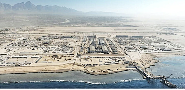 Die riesigen Ammoniak-Tanks mit jeweils rund 180.000 cbm in Neom werden vom deutschen Unternehmen SPG Steiner gebaut. Die Lagertanks haben jeweils eine Höhe von 40 Metern und einen Durchmesser von 76 Metern und sind auf dem folgenden Bild (Mitte unten) deutlich zu erkennen.