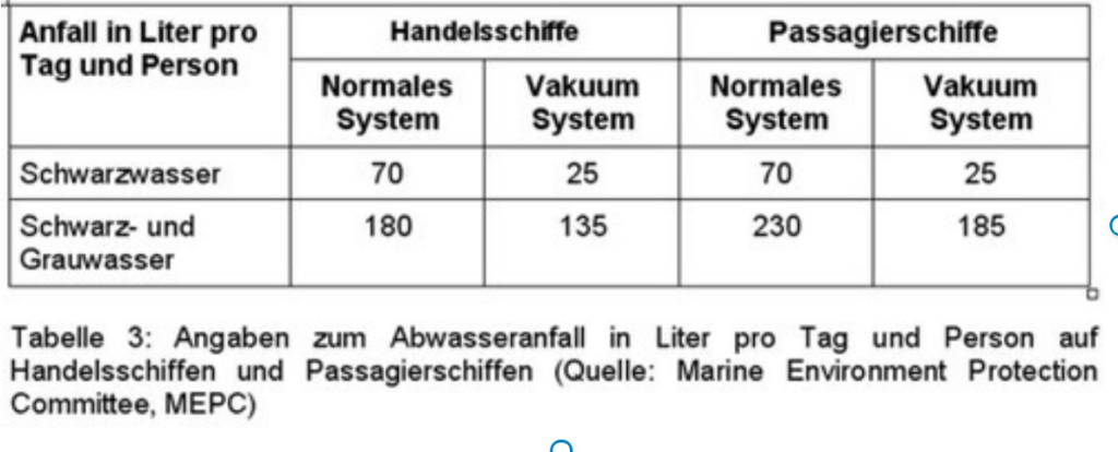 Für die rund 90.000 Schiffe (100.000 Schiffe 2012) der Frachtschifffahrt werden in der Literatur ca. 600 – 800.000 Besatzungsmitglieder angegeben. Auf den rund 400 Passagierschiffen entfallen 40 – 60 Mio. Personentage (inzwischen mehr), die sich mit Berücksichtigung der Besatzung in 200 – 250.000 ständige Personen umrechnen lassen. Damit ergeben sich insgesamt rund 1 Mio. Menschen in der Berufsschifffahrt, deren Müll und Abwässer zu entsorgen sind. Nicht enthalten sind die Fischerei, die küstennahe Inselfahrt und die Sportschifffahrt der ungezählten Segel- und Motorboote.
