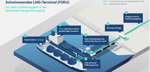 Funktionsweise einer FSRU (schwimmendes LNG-Terminal) – Grafik: RWE