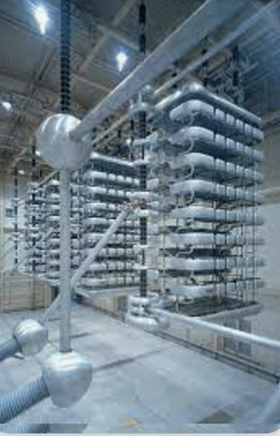 Folgende Bilder: Das Innere der Konverterplattformen und Größenvergleich Brandenburger Tor und Dolwin Gamma