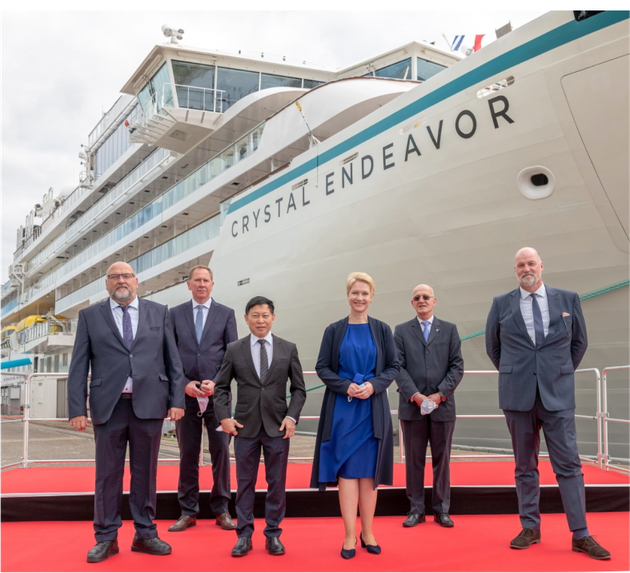 Viel Prominenz war bei der Taufe des Luxusschiffes „Crystal Endeavor“ vertreten. Wie geht es aber mit der Werft weiter?