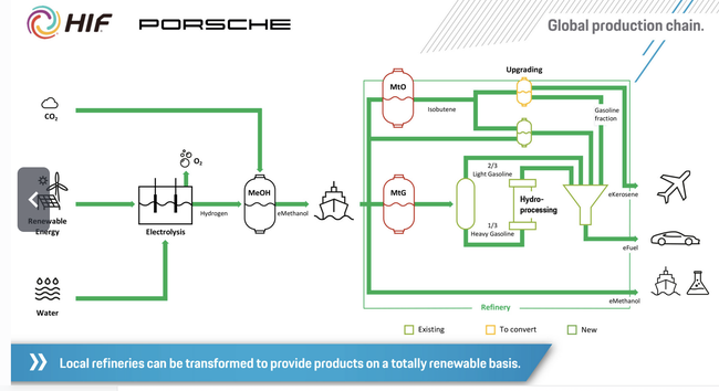 HIF Global liefert E-Benzin aus Chile an Shell in Hamburg, wo es für Porsche-Veranstaltungen aufbereitet wird. Die Vereinbarung soll die Alltagstauglichkeit synthetischer Kraftstoffe in Verbrennungsmotoren demonstrieren.