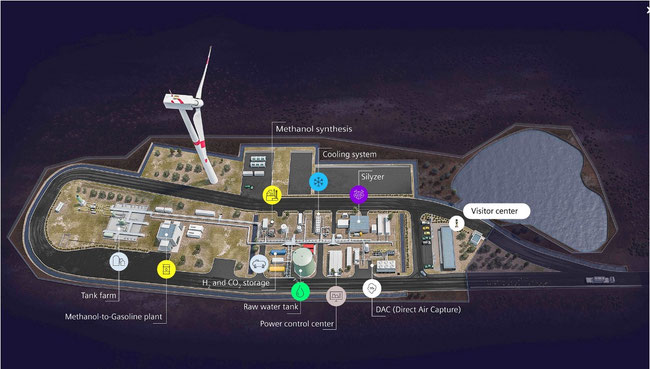 Siemens Energy wirkt als Co-Entwickler und Systemintegrator maßgeblich an der Ausgestaltung dieses Leuchtturmprojektes mit. Der Wasserstoff, der die Basis der Kraftstoffsynthese ist, wird mit einem Elektrolyseur von Siemens Energy produziert. Die Windturbine kommt von Siemens Gamesa. Die Herausforderung bei dem Projekt liegt darin, dass die bislang nur individuell erprobten Prozessschritte zur Herstellung synthetischer Kraftstoffe erstmals in einer Erzeugungskette so verbunden und aufeinander abgestimmt werden mussten, dass die Produktion effizient und störungsfrei läuft.Diese Integration ist die Grundlage für den Hochlauf der eFuels-Herstellung.