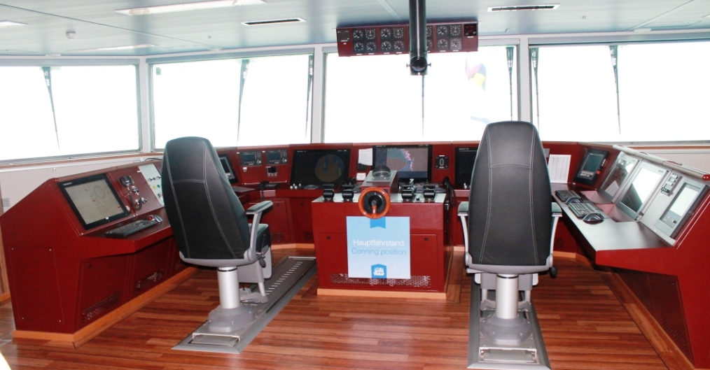 Abbildung 4: Brücke, Fahrstand zur dynamischen Positionierug (Foto Dr. Hochhaus).