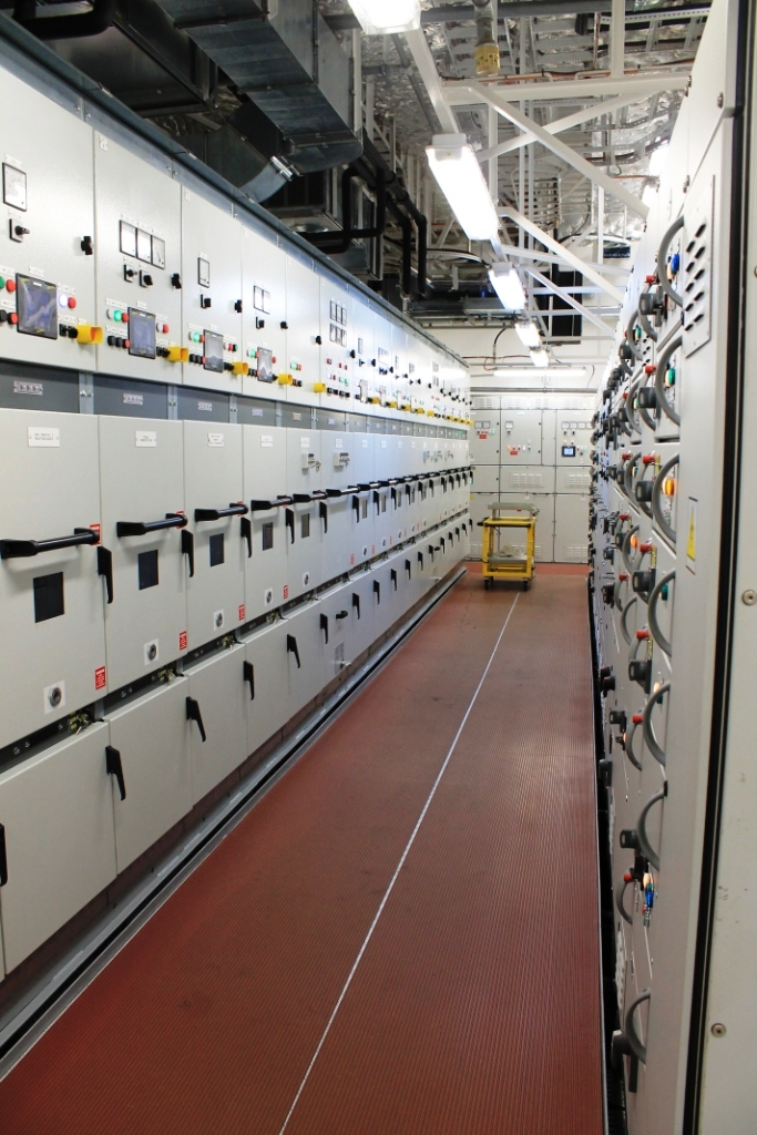 Der Maschinenkontrollraum (MKR), die Maschinenräume und die Räume für die Schalttafeln befinden sich unter dem Hauptdeck. Der MKR enthält das Fahrpult mit dem Automationssystem MCS Platinum von Sam Electronics, die Instrumente mit Anzeigen für die Dieselmotoren und die Hilfssysteme. Die elektrischen Schalttafeln (Abb. 6) und Transformatoren befinden sich aufgrund der Redundanz in zwei separaten Räumen. Auch die Hauptmaschinenräume mit je zwei Dieselgeneratoren wurden daher in getrennten Räumen angeordnet.