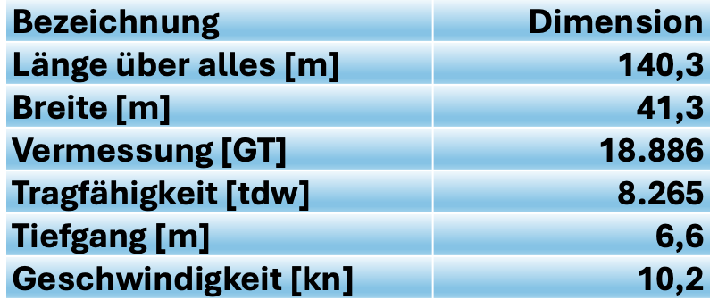 Tabelle 1: Schiffsdaten der„Vidar“